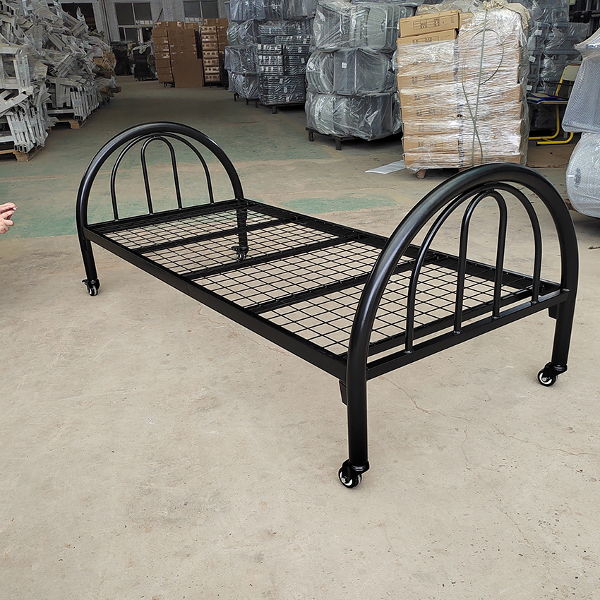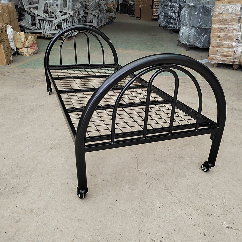 黑色帶輪子單層床